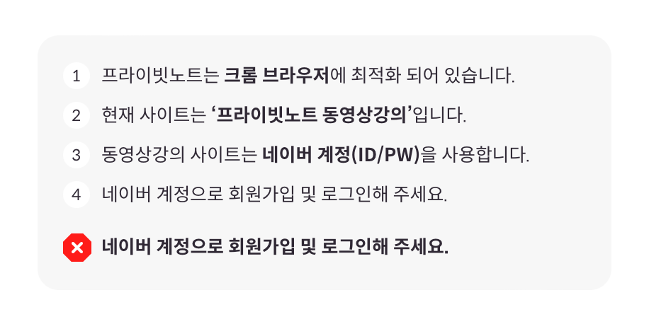-프라이빗노트 > 동영상강의 사이트 로그인 계정과 결제한 계정이 동일해야 바로 시청이 가능합니다.