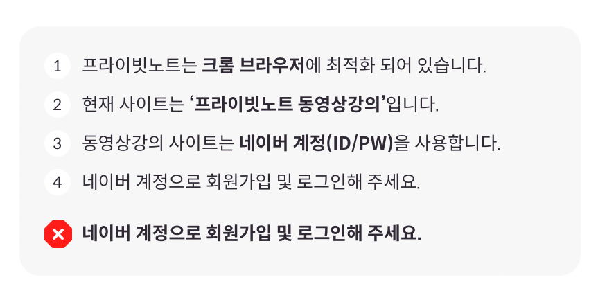 -프라이빗노트 > 동영상강의 사이트 로그인 계정과 결제한 계정이 동일해야 바로 시청이 가능합니다.