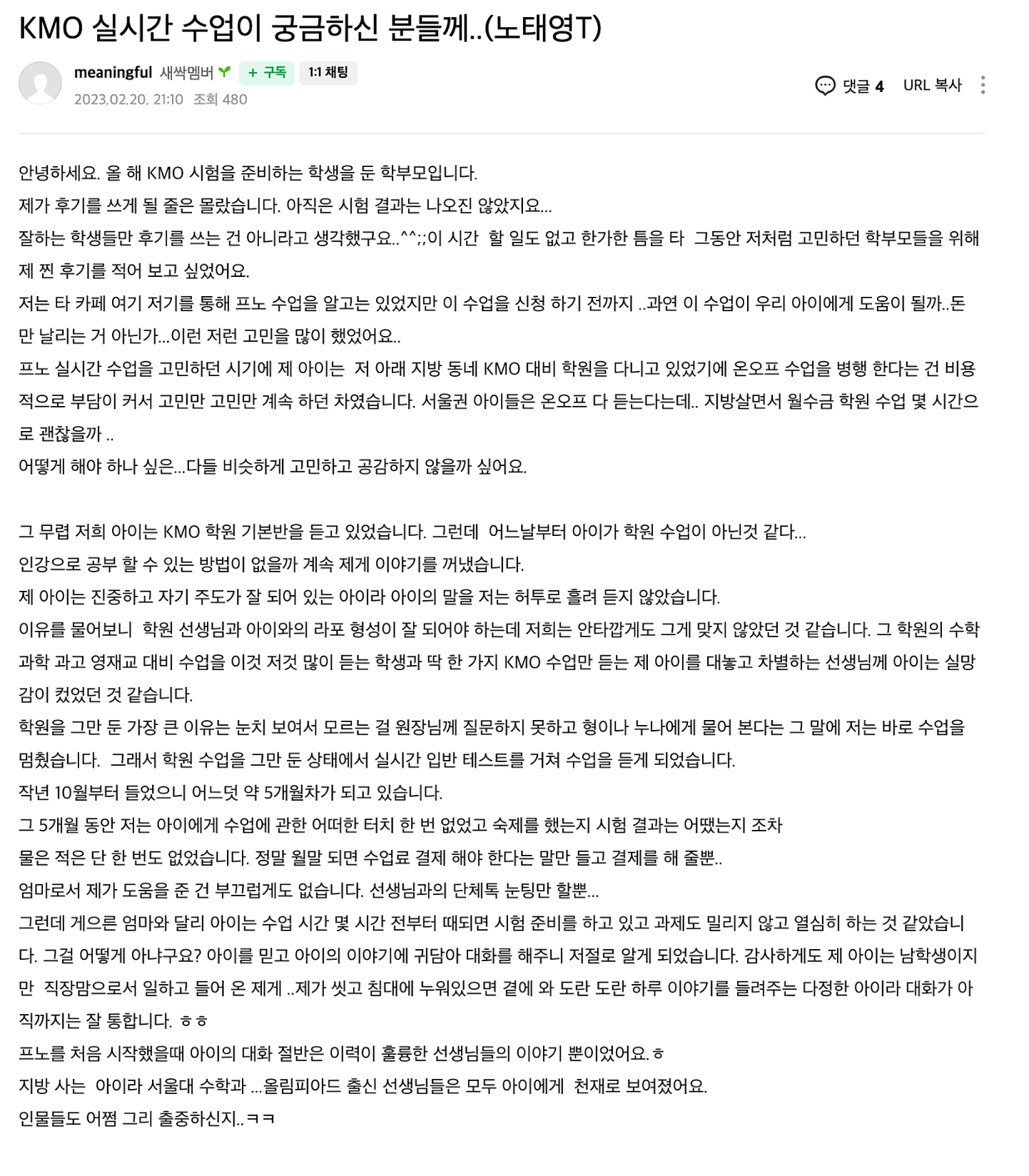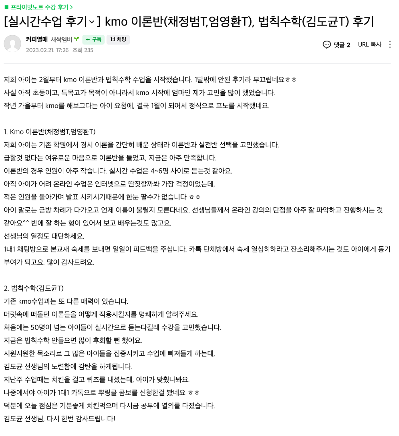 프라이빗노트 KMO 1차 대비반 후기