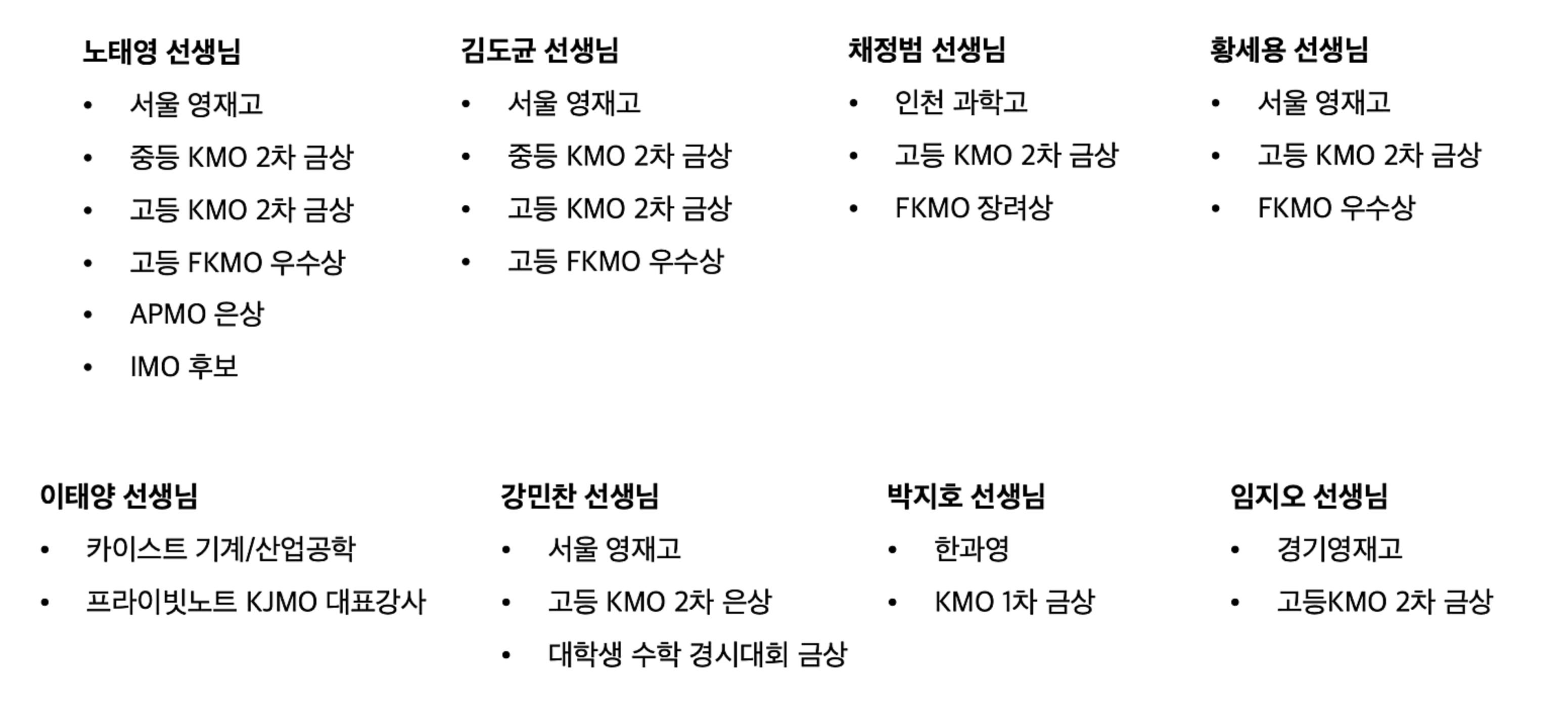 22년 KMO 2차 금7/은2/동2/장려2 (수강생 약 70% 수상)