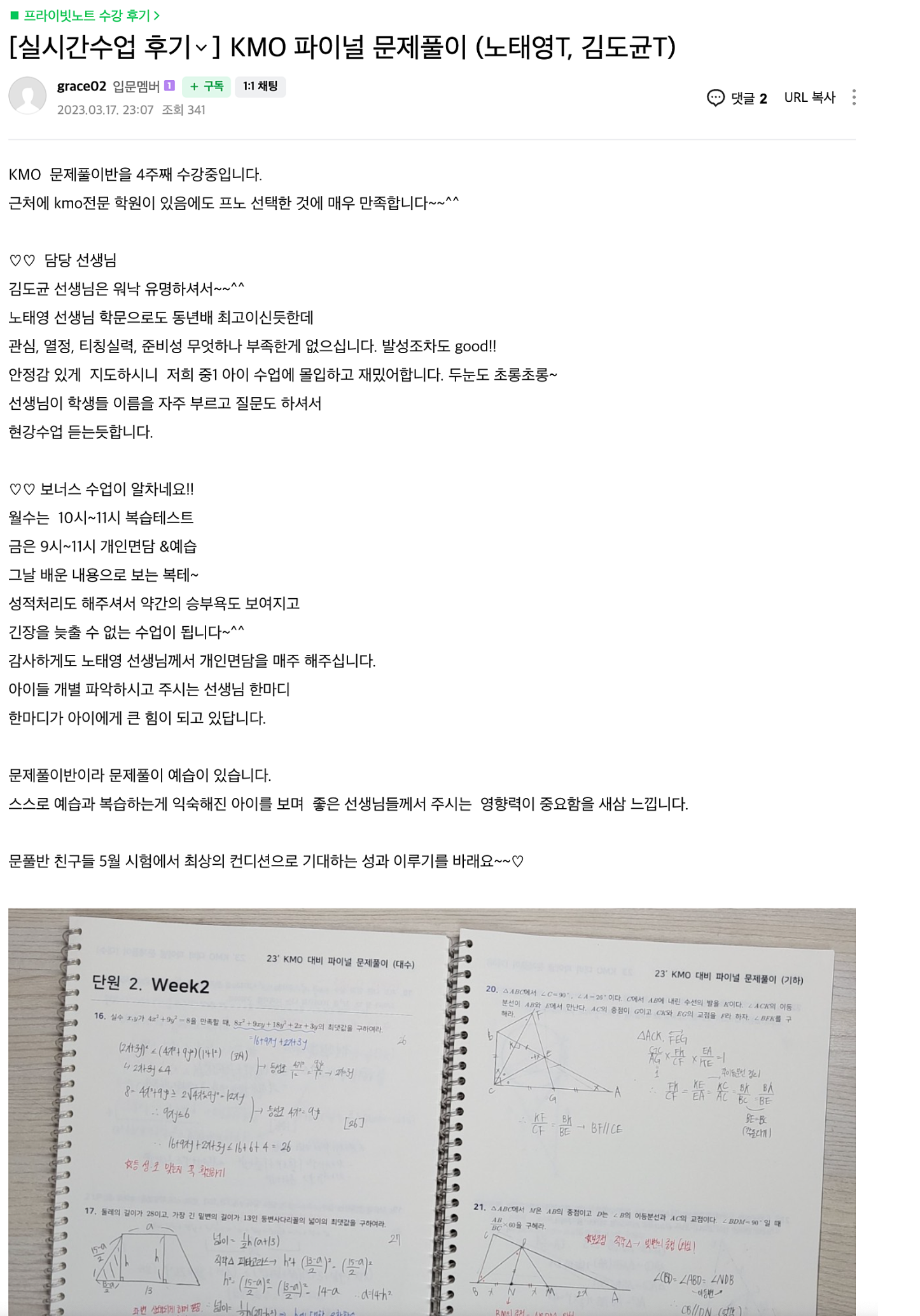 프라이빗노트 KMO 1차 대비반 후기