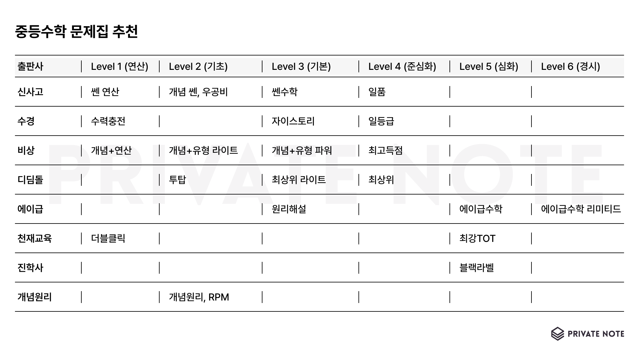 [중등수학] 중등수학 문제집 난이도별 추천 (feat. 학기당 6권 풀기)