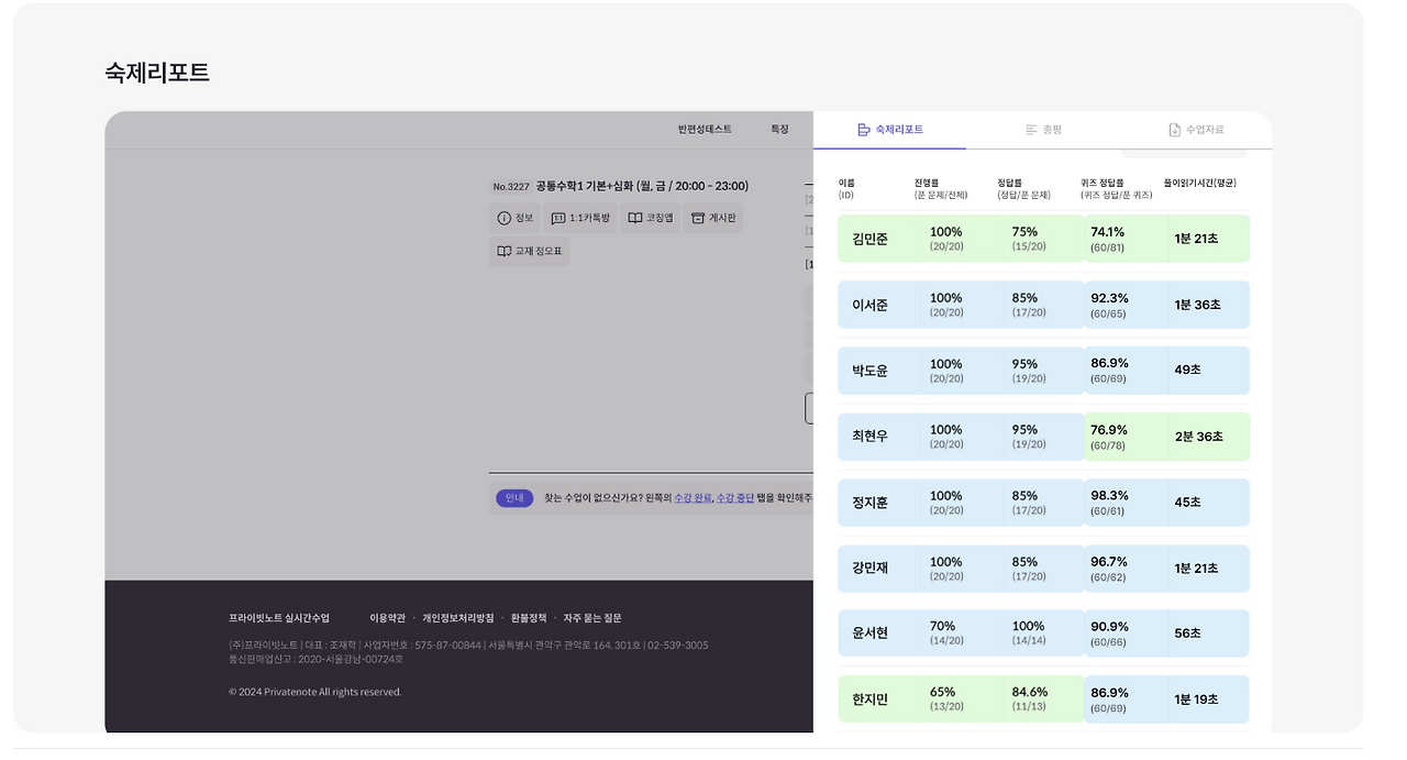 ❸ 숙제리포트 항목이 ‘풀이 이해도’ → 퀴즈 정답률’로 변경됩니다.
