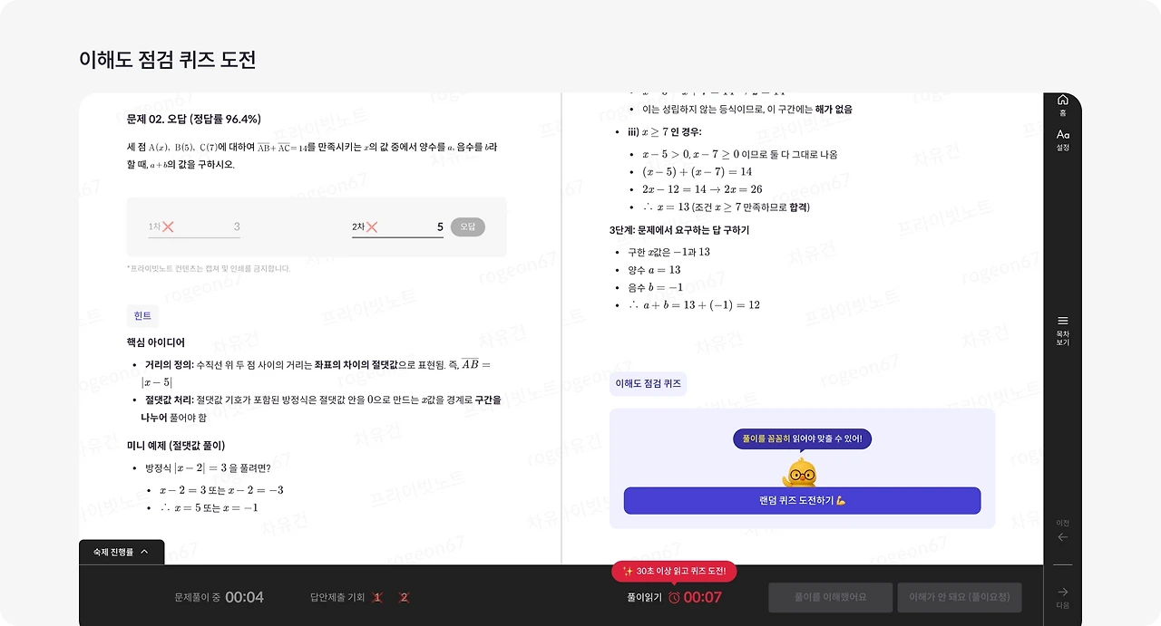 프라이빗노트 코칭앱에 ‘이해도 점검 퀴즈’ 기능이 새롭게 도입되었습니다.